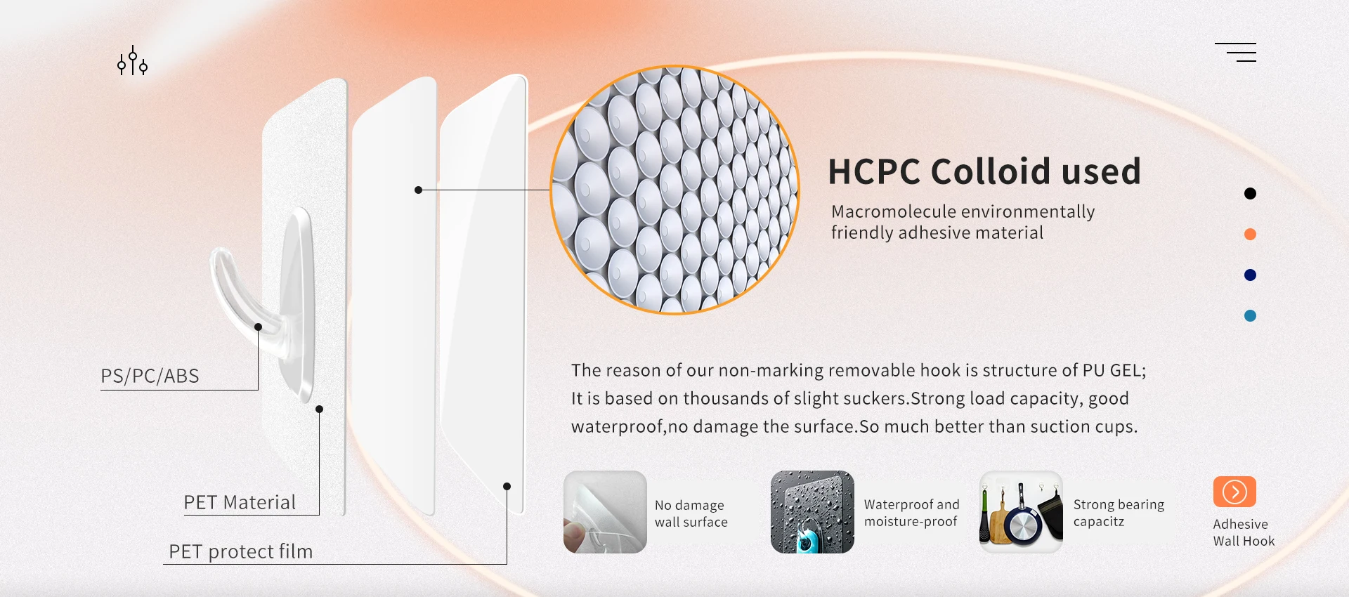 HCPC horizon, we are the origin factry of houseware organizer products ,such as wall hook,creative animal hooks, sticky hook buckles, lazyphone sticker, nano tape, rug gripper and so on.